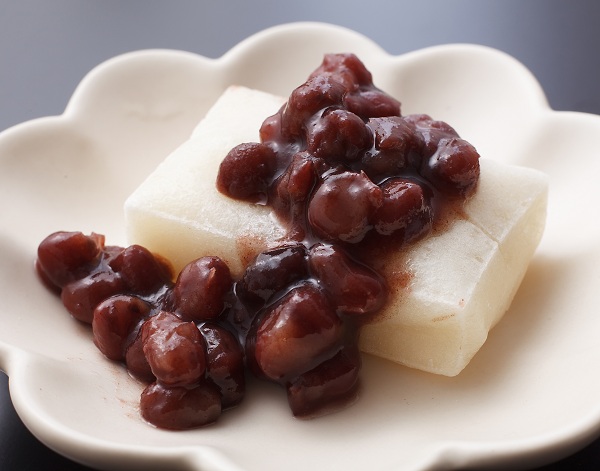 A warm dessert featuring mochi in a sweet red bean soup. It warms both body and soul on cold days.
