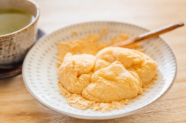 Grilled mochi coated with fragrant kinako (roasted soybean flour) and sugar. Its sweet and nutty flavor is very popular.