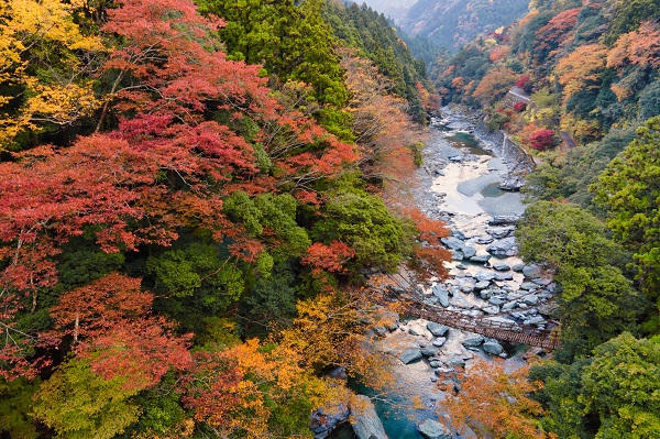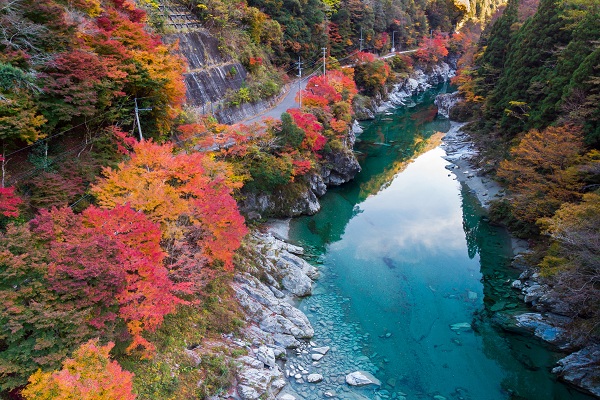 Tokushima Prefecture, blessed with the majestic Shikoku Mountains, the clear Yoshino River, and rich nature facing the Pacific Ocean, offers breathtakingly beautiful autumn foliage throughout the prefecture every autumn. While Tokushima is famous for Awa Odori dance and the Naruto Whirlpools, it is also home to numerous spectacular autumn foliage spots. With its diverse terrain of mountains, valleys, and satoyama (traditional Japanese countryside), Tokushima boasts a variety of autumn foliage locations. Here are our top 3 recommended spots in Tokushima.