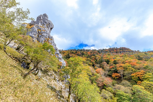 “Mt. Tsurugi,” the second highest peak in Western Japan, has been revered as a sacred mountain for mountain asceticism since ancient times. A lift allows easy access close to the summit, enabling even beginners to enjoy the magnificent mountain autumn foliage. The panoramic autumn colors of maples, beeches, and mountain ash dyeing the mountainside are truly a spectacular sight.