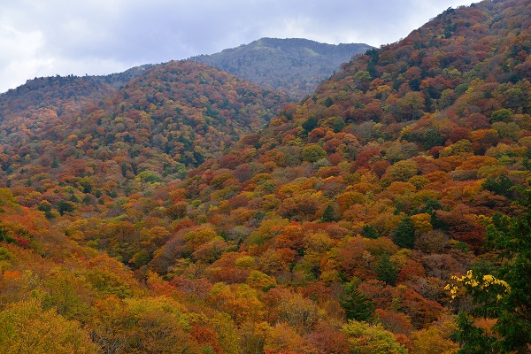 The autumn foliage seen from an altitude of approximately 1,955m shows different gradations depending on the season, offering new discoveries with each visit.