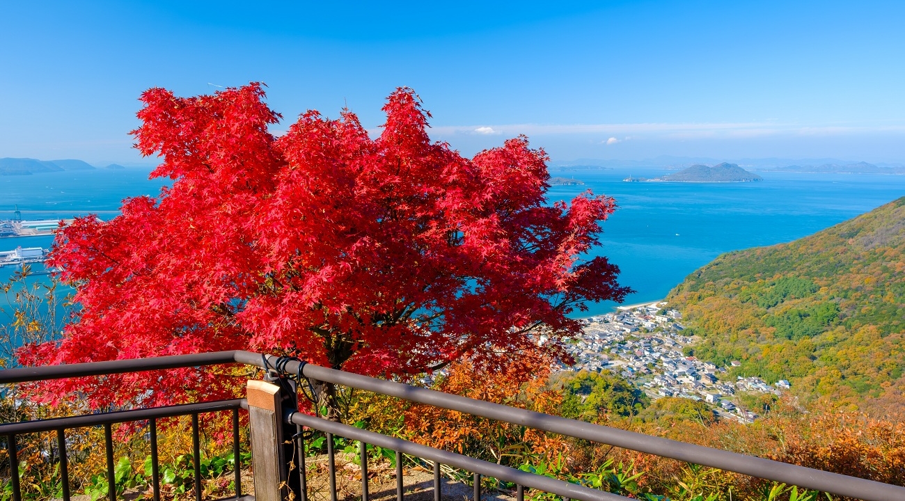 – 瀬戸内海の島々を背景にした紅葉パノラマ