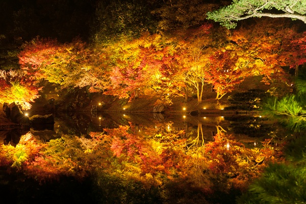早朝の開園直後がおすすめです!朝霧に包まれた庭園と紅葉のコラボレーションは息を呑む美しさです。和船に乗って水面から見上げる紅葉も格別です!紅葉のライトアップ時期中は、夜も和船が運航するので、こちらもおすすめ!