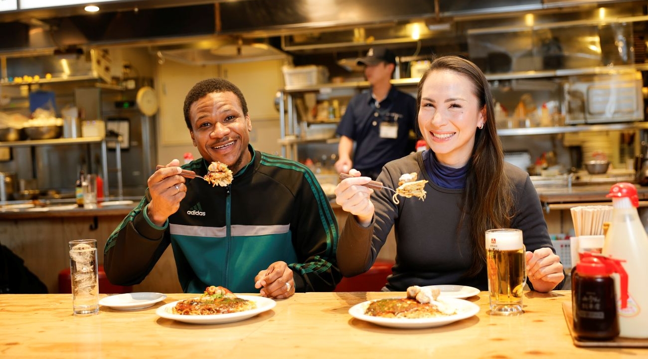Hiroshima Style & International Style OKONOMIYAKI Dinner at Mitchan Sohonten Orizuru Tower